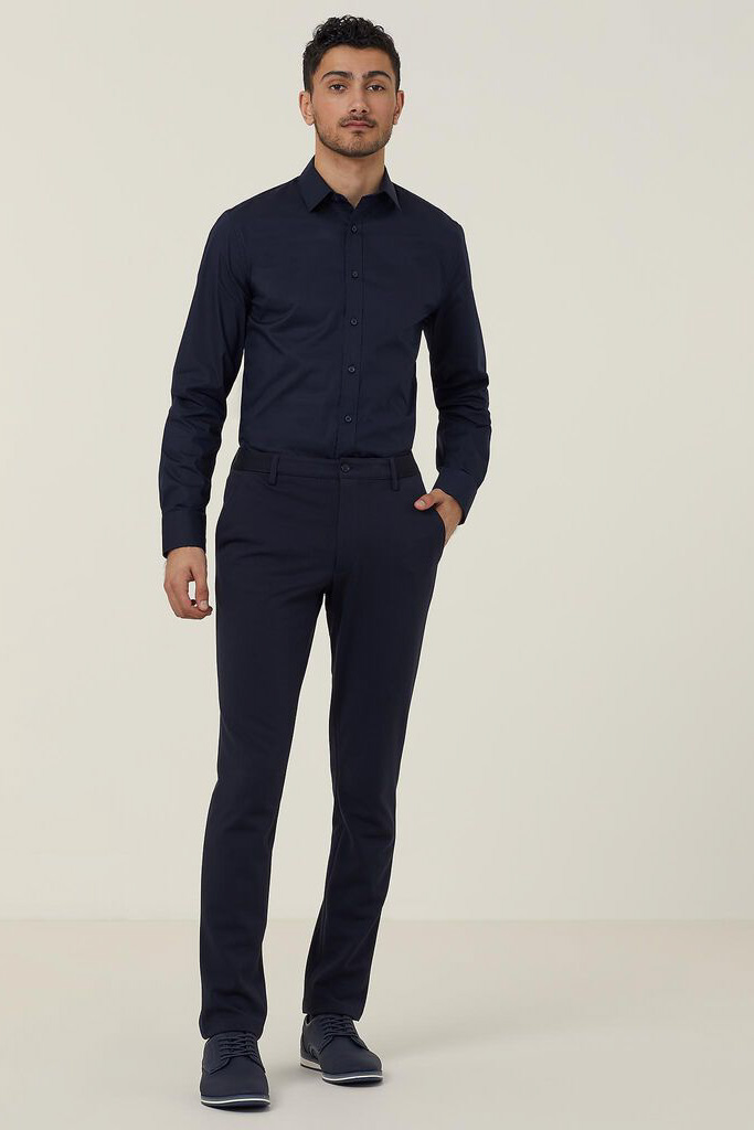 While perfectly matched pieces will always have their place, a modern way to upgrade team dressing is via co-ordinating items that allow for a more personalised approach. Tied together with a likeminded colour palette or fabric choice, a range of shapes and styles that suit every team member will create a contemporary and distinctive feel. Consider classic silhouettes, such as our Short Sleeve Dress and Long Sleeve Unstructured Shirt in timeless navy for a smart starting point. These can be easily dressed up or down and are designed to flatter. They’re also great options to layer with tailoring for an individual yet professional look. For men, the Avignon Long Sleeve Slim Shirt in navy co-ordinates seamlessly and works for both corporate and casual codes. Styled with suiting or relaxed separates, the look is similarly sharp.