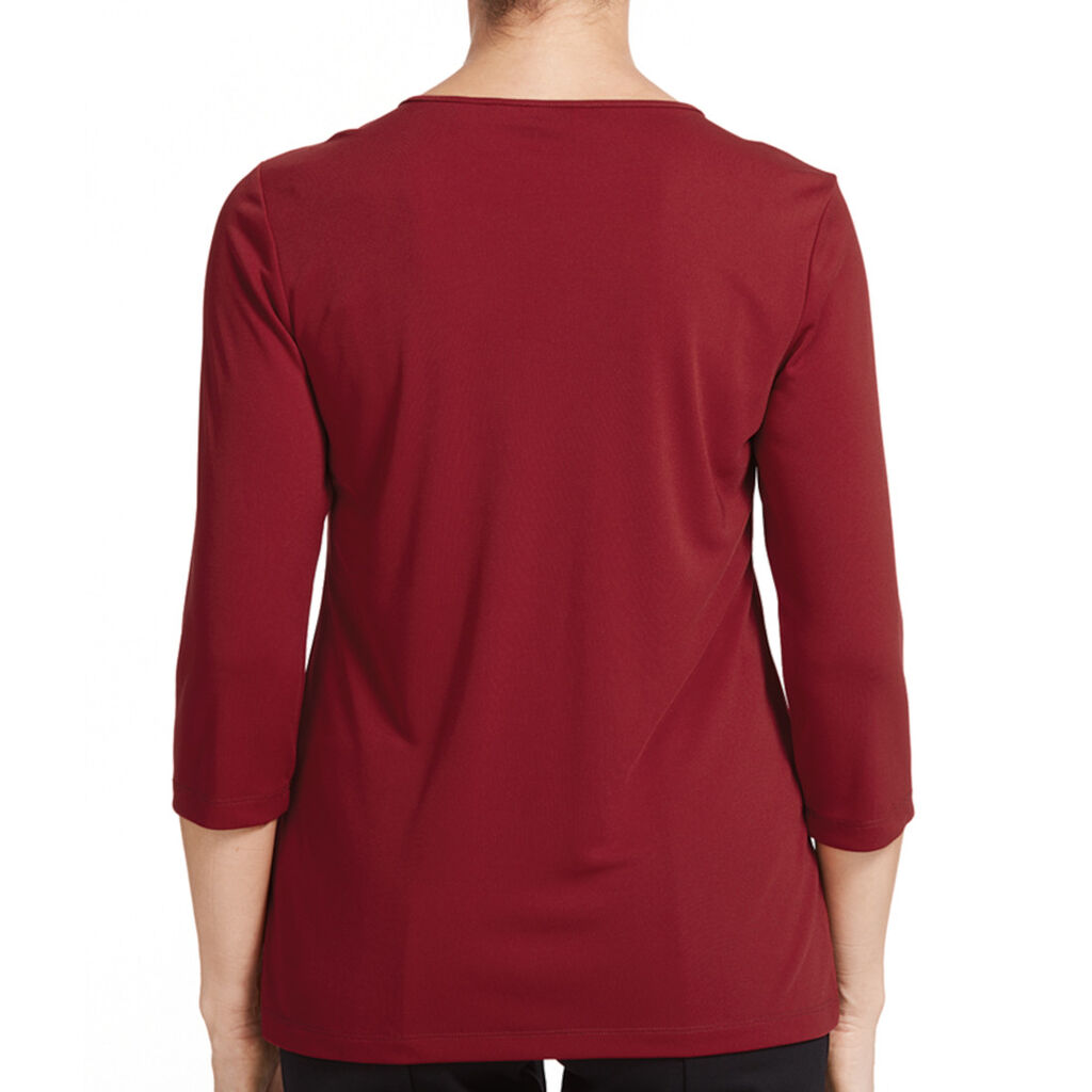 The 3/4 Sleeve T Top provides the soft jersey comfort of a tee yet the look of a blouse, with 3/4 length sleeves and pleat detailing to front body. Style with a slim leg pant for a smart option working from home or office.